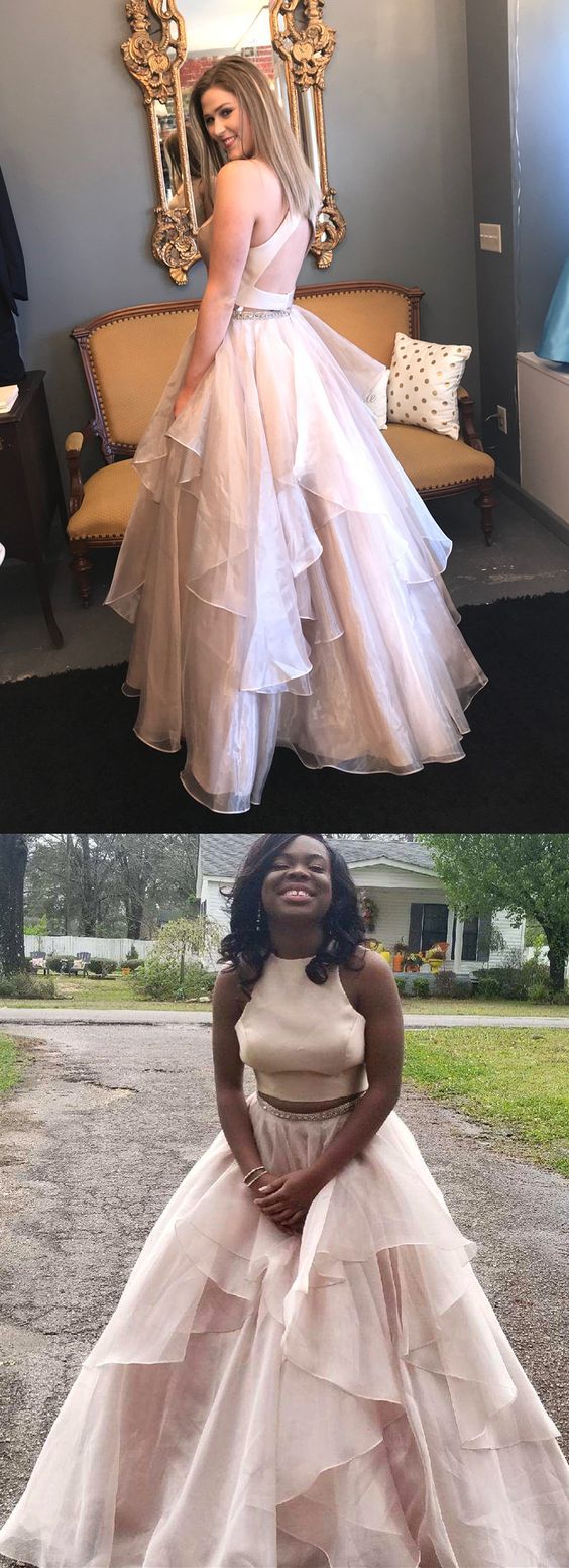 two pieces long open back fluffy formal prom dress, PD5885