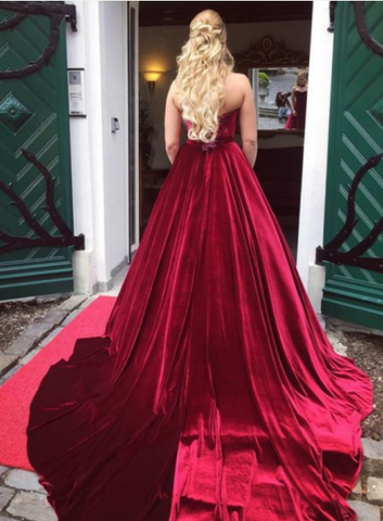 velvet burgundy sweetheart A-line formal long prom dress, PD02501