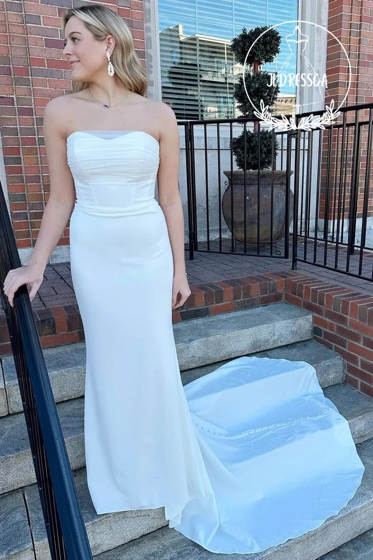 White Long Strapless Mermaid Wedding Dress, WD25038